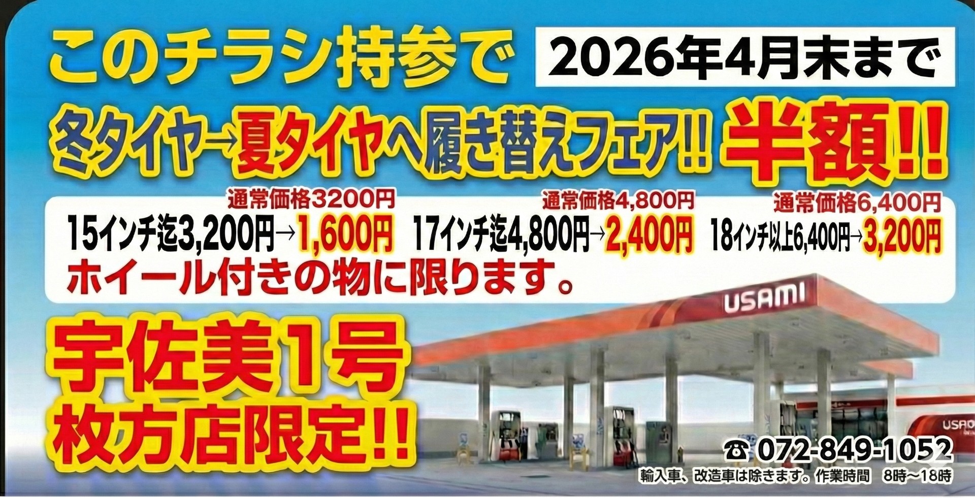 作業をご用命の際は直接店舗へご連絡の上、ご予約をお願い致します。