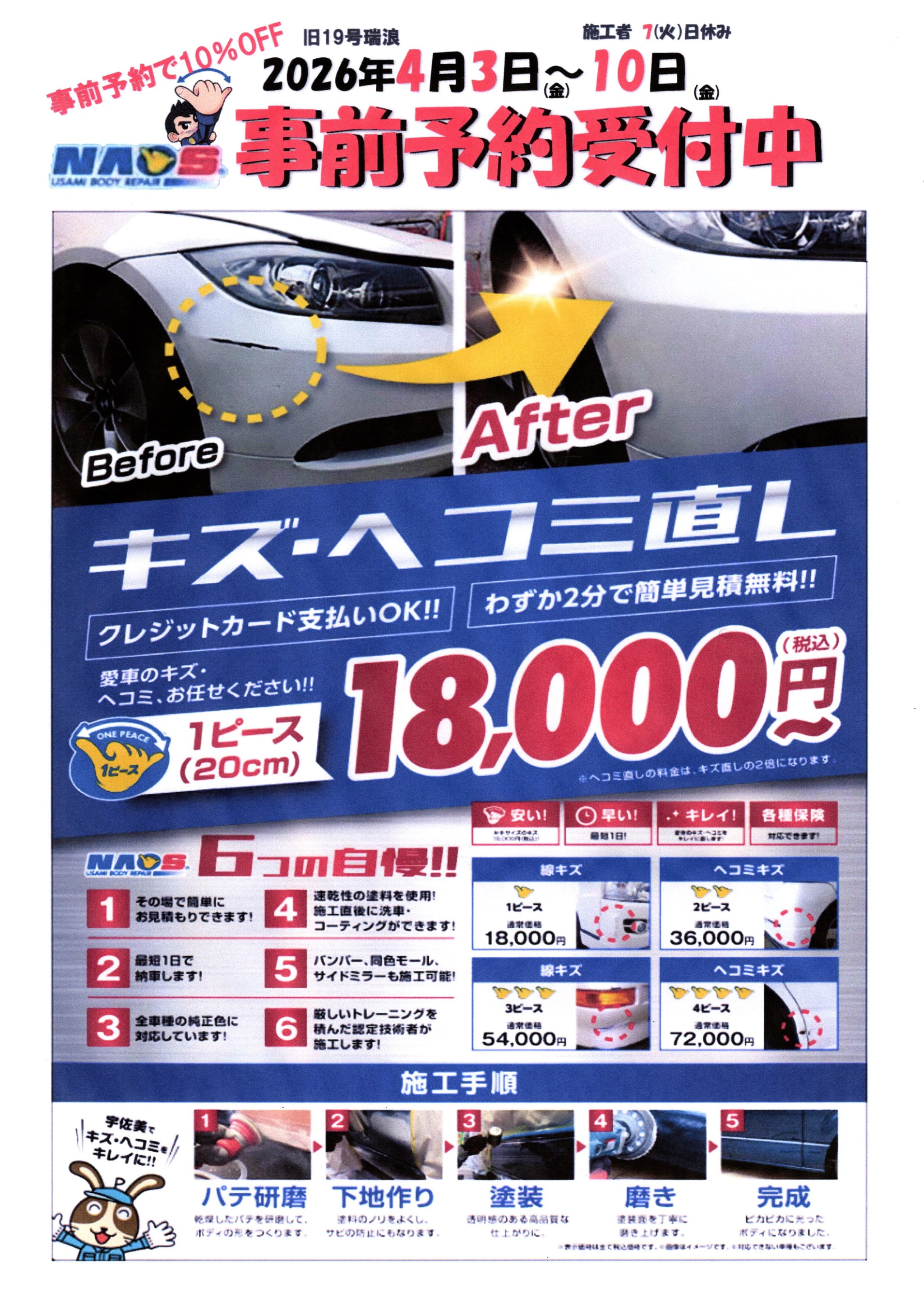 作業をご用命の際は直接店舗へご連絡の上、ご予約をお願い致します。