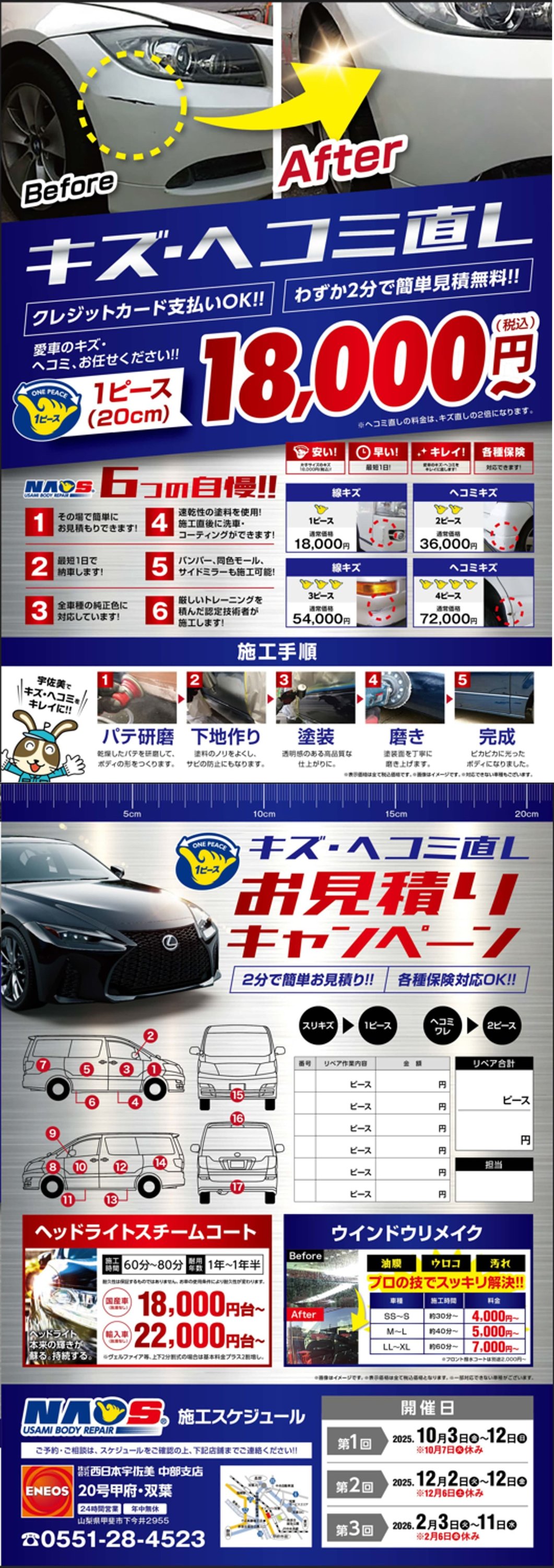 作業をご用命の際は直接店舗へご連絡の上、ご予約をお願い致します。