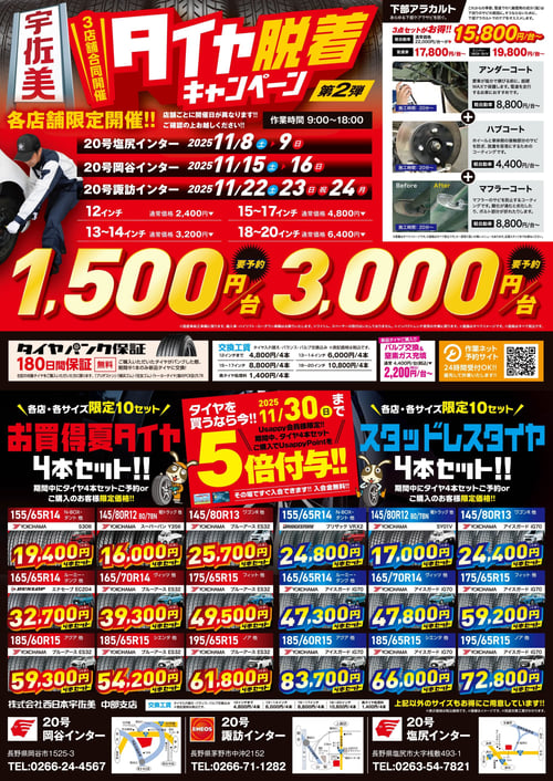 作業をご用命の際は直接店舗へご連絡の上、ご予約をお願い致します。