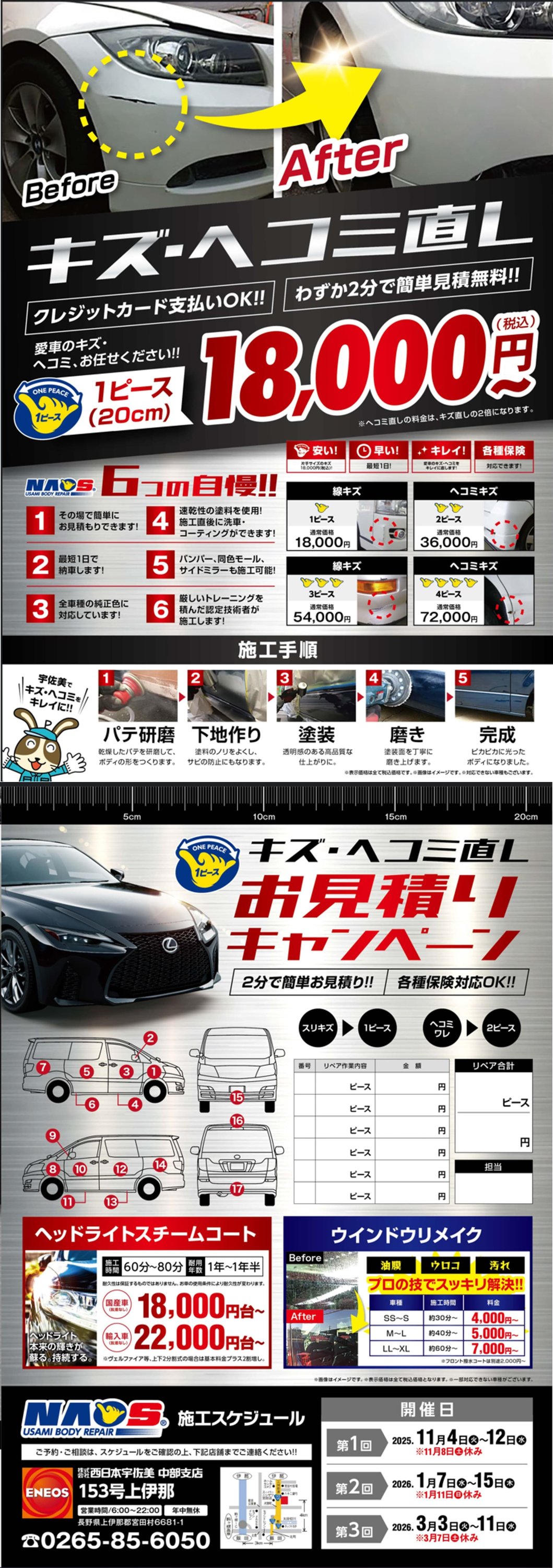 作業をご用命の際は直接店舗へご連絡の上、ご予約をお願い致します。