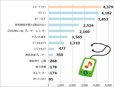 所有のデジタル家電製品について、今後使用頻度が増えると考えている製品