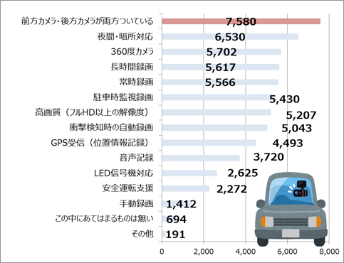 「あおり運転」の被害にあわないために、ドライブレコーダーに欲しいと感じる機能